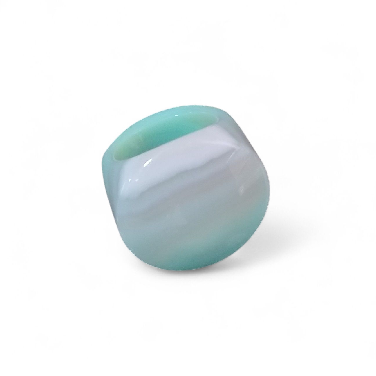 Anel de Amazonita azul claro, uma peça rara e delicada, com um tom suave que se harmoniza facilmente. Sua cor transmite elegância, leveza e jovialidade, conferindo sutileza única a quem a usa.