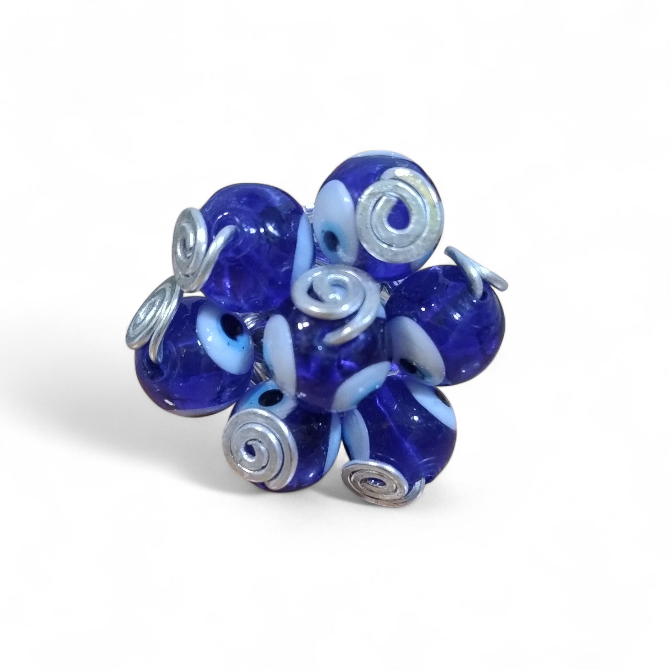 Maxi anel de murano com olho grego, confeccionado em alumínio. Uma peça marcante, feita para quem transmite atitude, personalidade e força em cada detalhe. Aro 18
