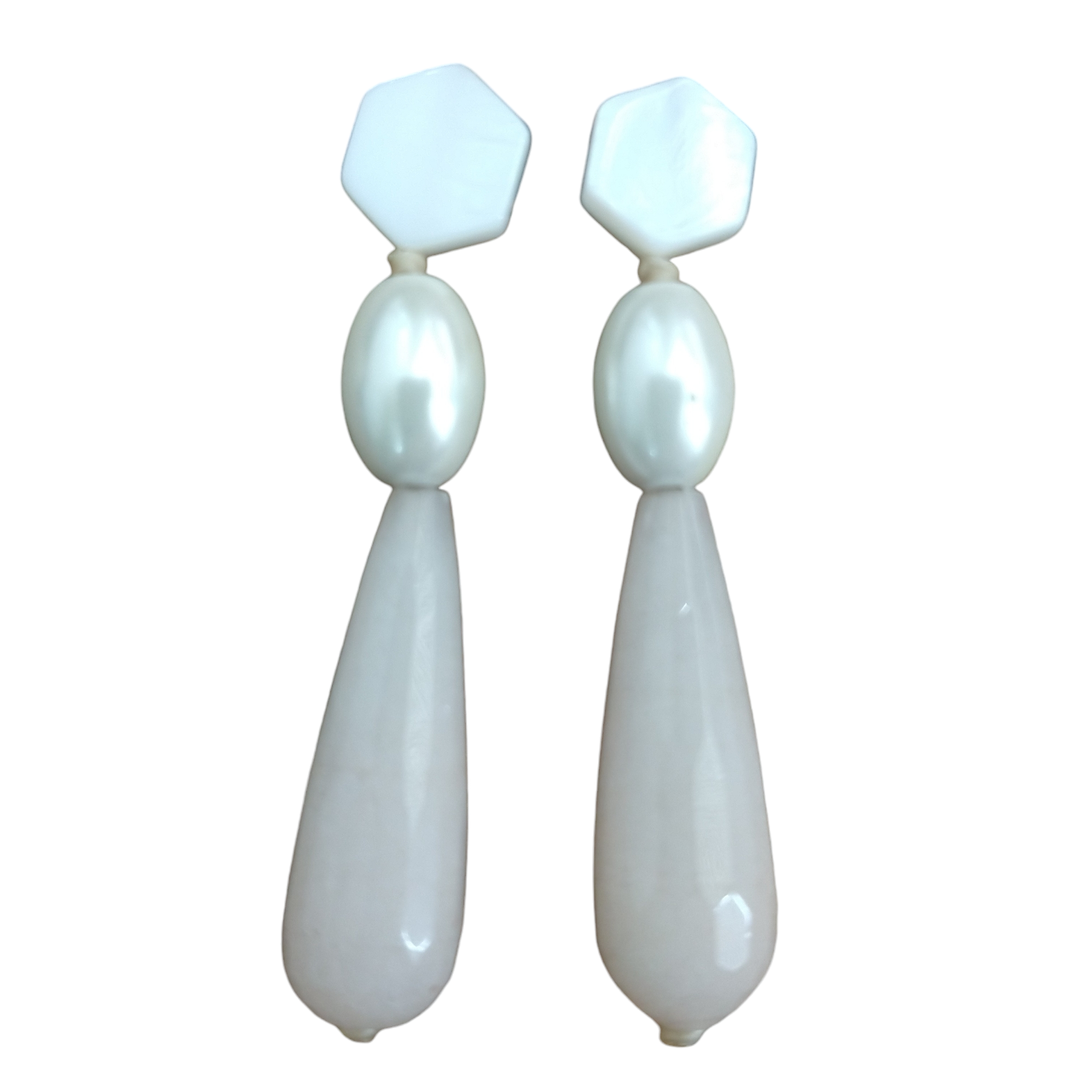 Brinco madrepérola, pérola Shell e gota facetada ágata, 58mm