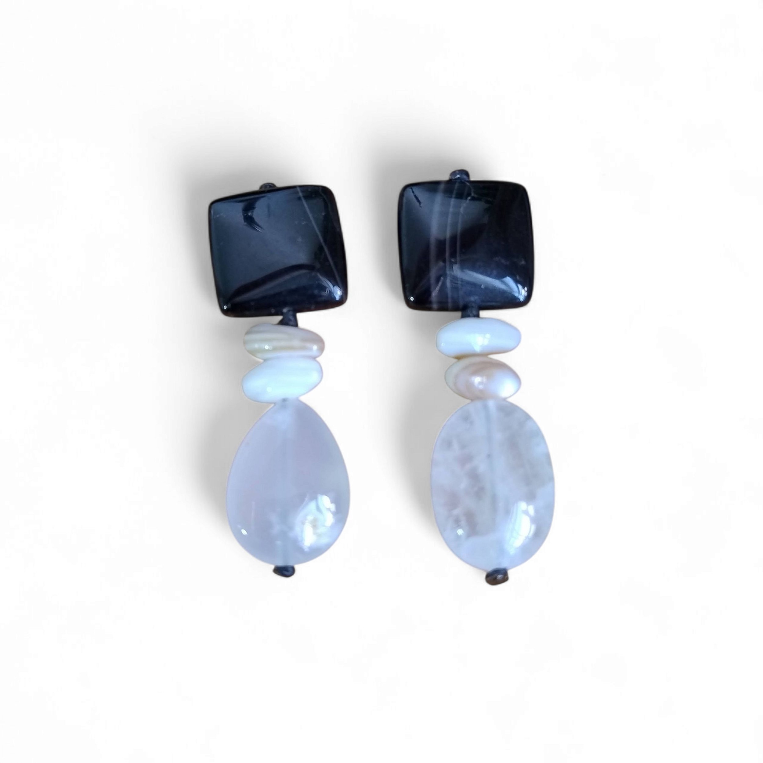 Peça elegante confeccionada com ágata, madrepérola e gota de quartzo. Um design sofisticado, versátil e de fácil harmonização, perfeito para compor look's refinados com leveza e personalidade.