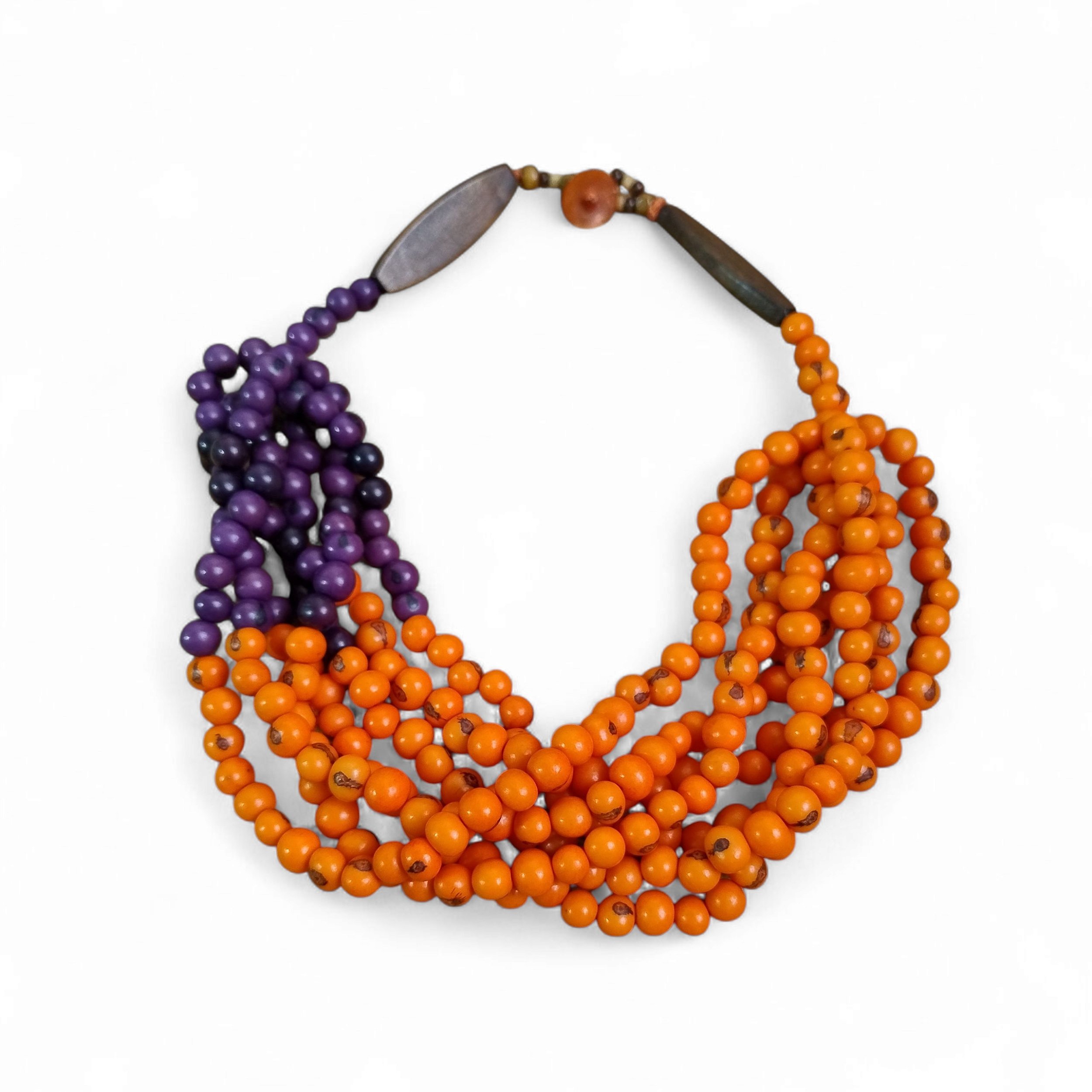 Um colar de 7 voltas feito com sementes de açaí de alta qualidade, na vibrante cor coral com um toque delicado de roxo. Natural, leve e cheio de atitude, ele traduz a essência da mulher moderna — autêntica, elegante e com estilo próprio. Um maxi colar artesanal que transforma qualquer look com simplicidade e sofisticação, perfeito para quem ama se destacar sem esforço.
