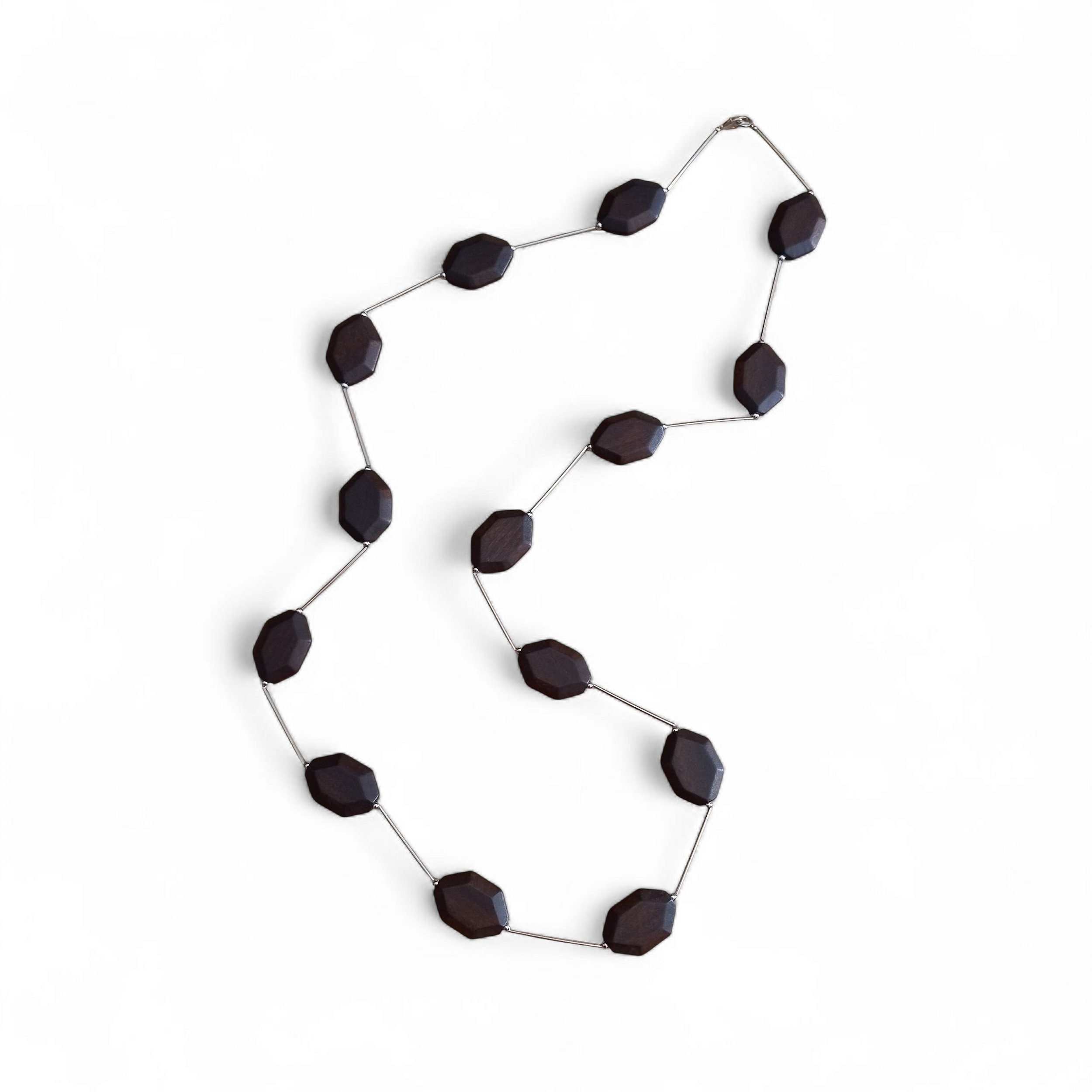 Colar longo de estilo minimalista e identidade marcante. Confeccionado em tubo de alumínio e madeira, une design contemporâneo e toque natural em uma harmonia perfeita. Leve, versátil e cheio de personalidade, é a peça ideal para quem busca elegância discreta e autenticidade em cada detalhe.