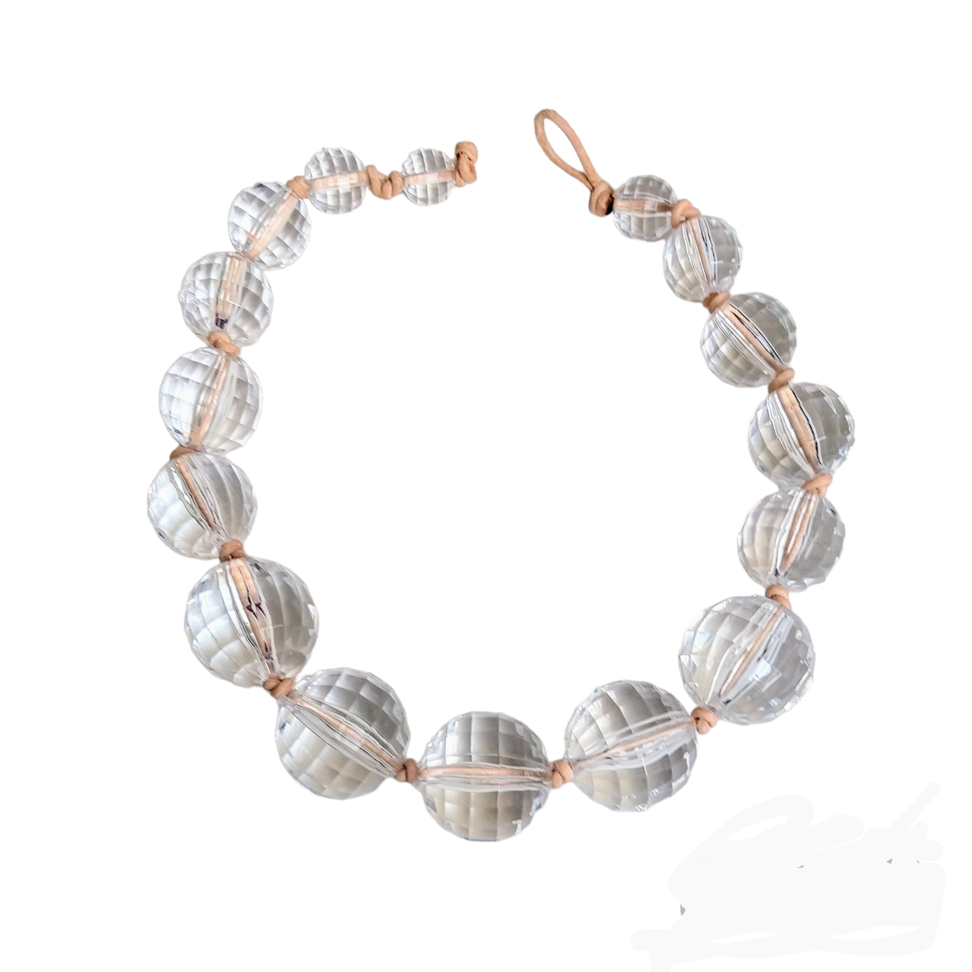 Colar esferas de resina super facetada, com fio de couro nude até o fechamento. Comprimento 45 cm